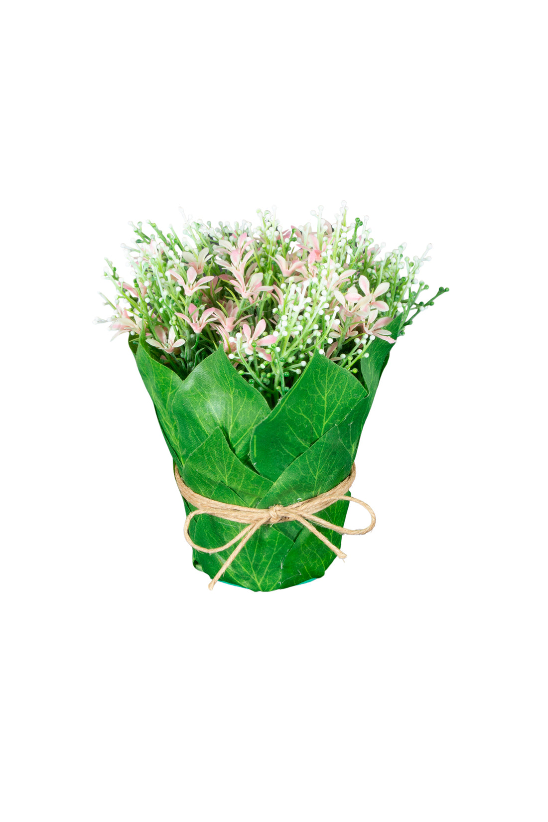 VASO DE FOLHAS COM FLORES ROSA 15CM Cod: A6520