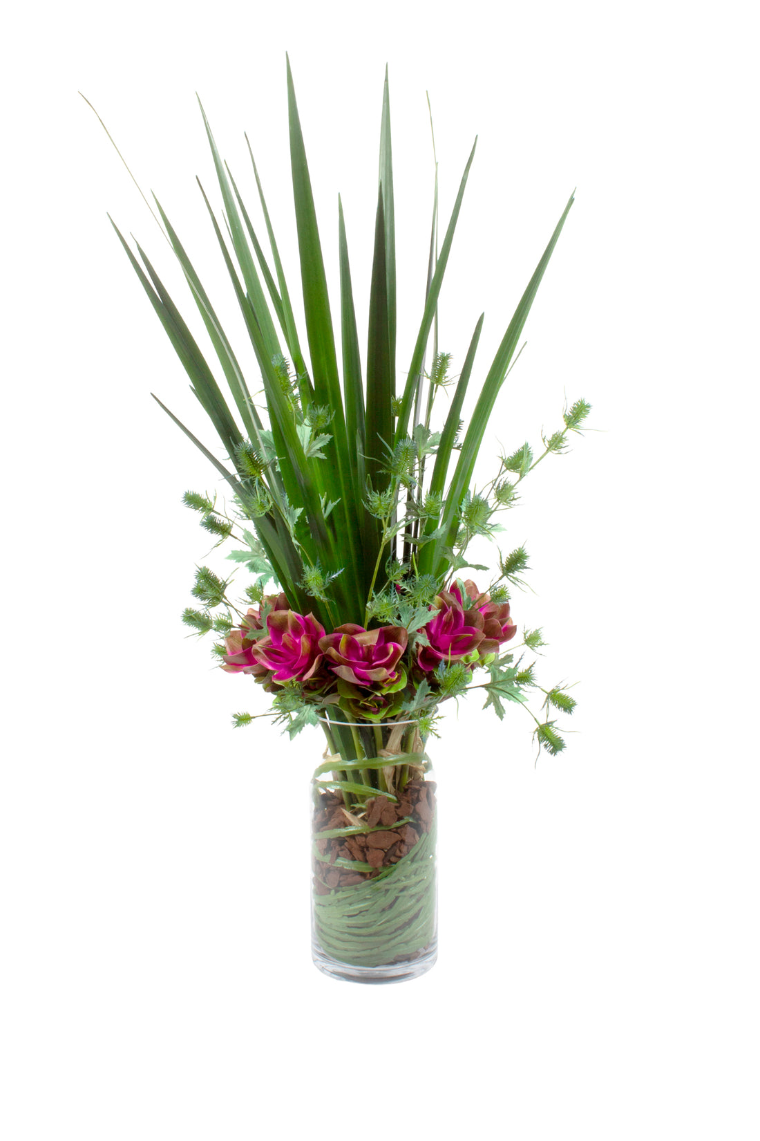 DALIA ROSA E ASPARGUS EM VIDRO 15CM Cod: A6399