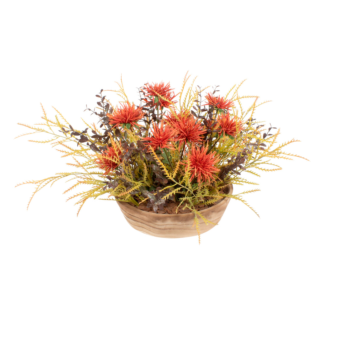 CRISÂNTEMO/ FOLHAGENS EM BOWL DE MADEIRA 40CM Cod: A7215