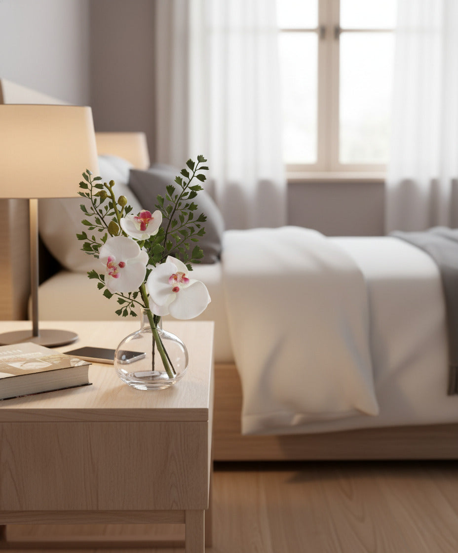 ORQ. PHALAENOPSIS E AVENCAS NO VIDRO 30CM Cod: A6403
