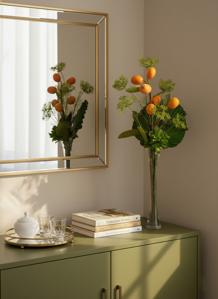 NESPERAS E FOLHAGENS EM VIDRO 75CM Cod: A6852