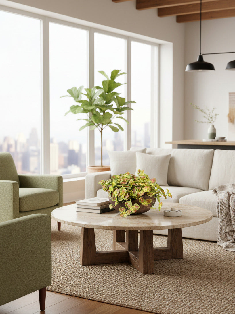 SAXIFRAGA EM CACHEPOT DE MADEIRA 45CM DIÂM. Cod: A7037