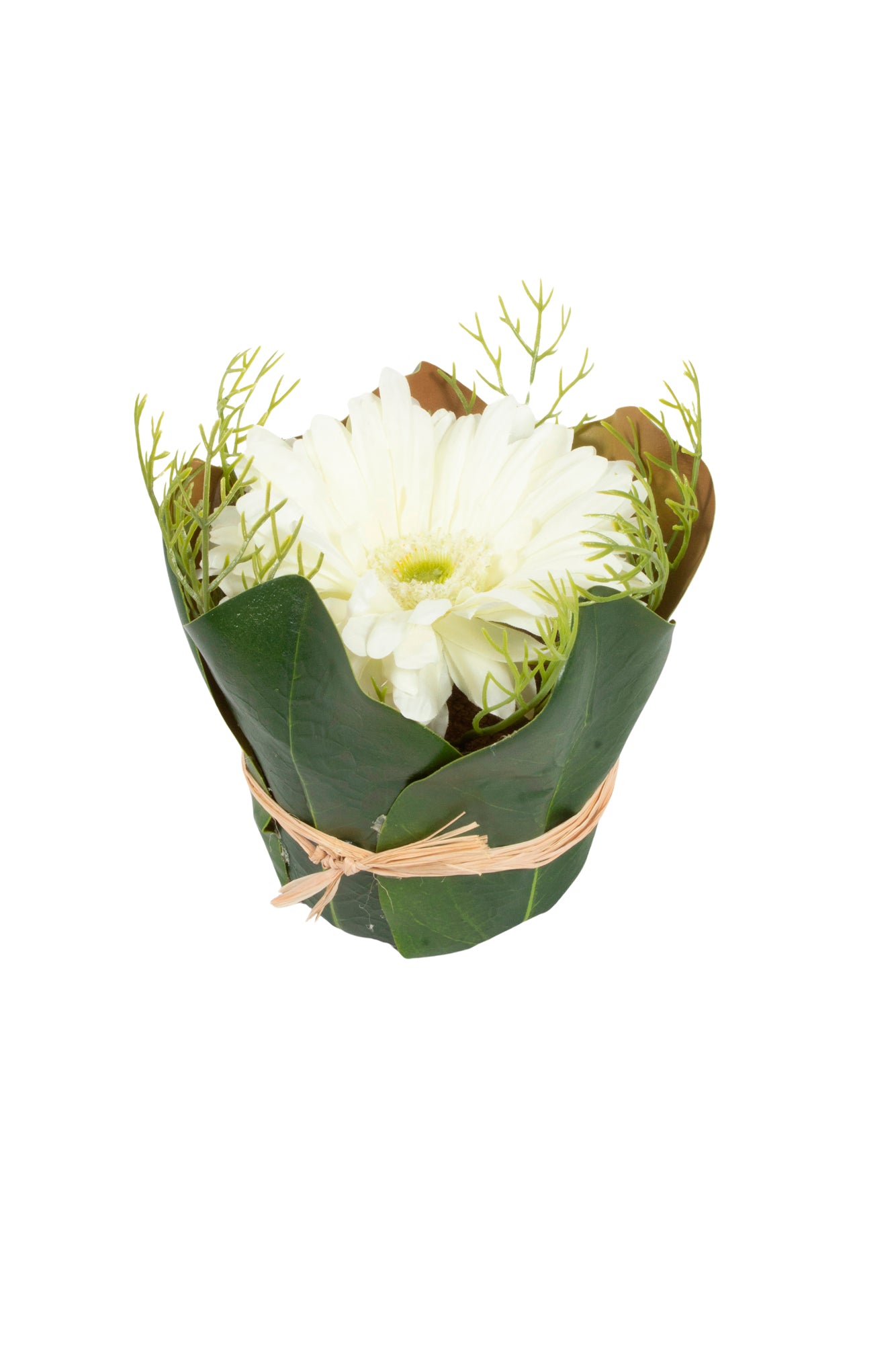 GERBERA BR EM CACHEPOT DE FOLHAS, 13CM Cod: A6926