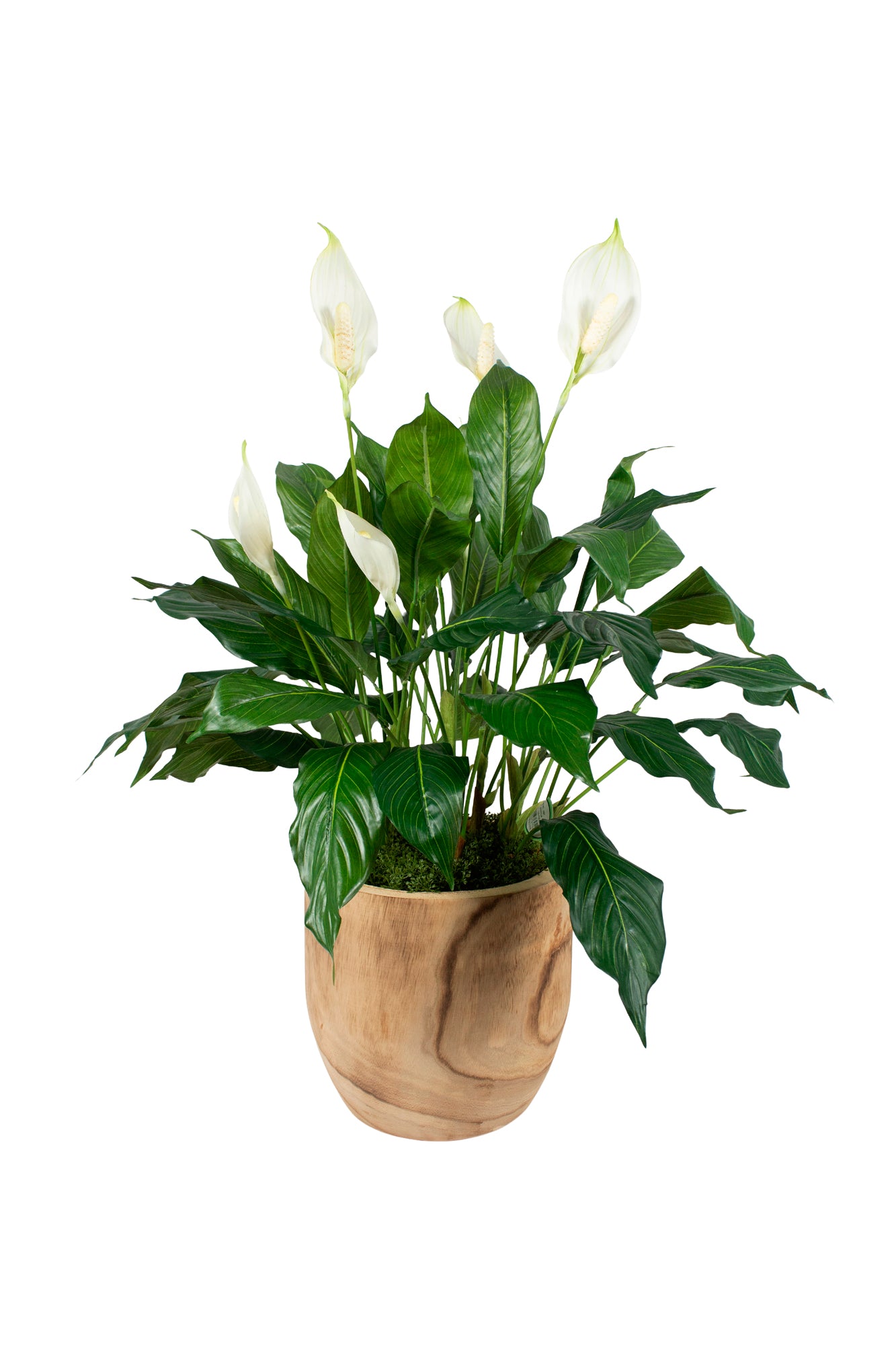 LÍRIOS DA PAZ EM VASO DE MADEIRA, 75CM Cod: A6934